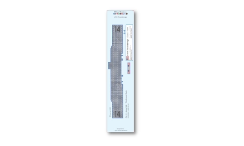 Each deck decal comes with a national flag and a ship label with key ship characteristics. Optionally choose authentic hull camouflage. The Essex class consisted of two different bow configurations. The "Long Hull" reference is given to differentiate the Ticonderoga subclass from ealier Essex class carriers. The Ticonderoga subclass had a hull which extended beyond the flight deck, thus these ships are referred to as "Long Hull". These are the ships with the long hull design: