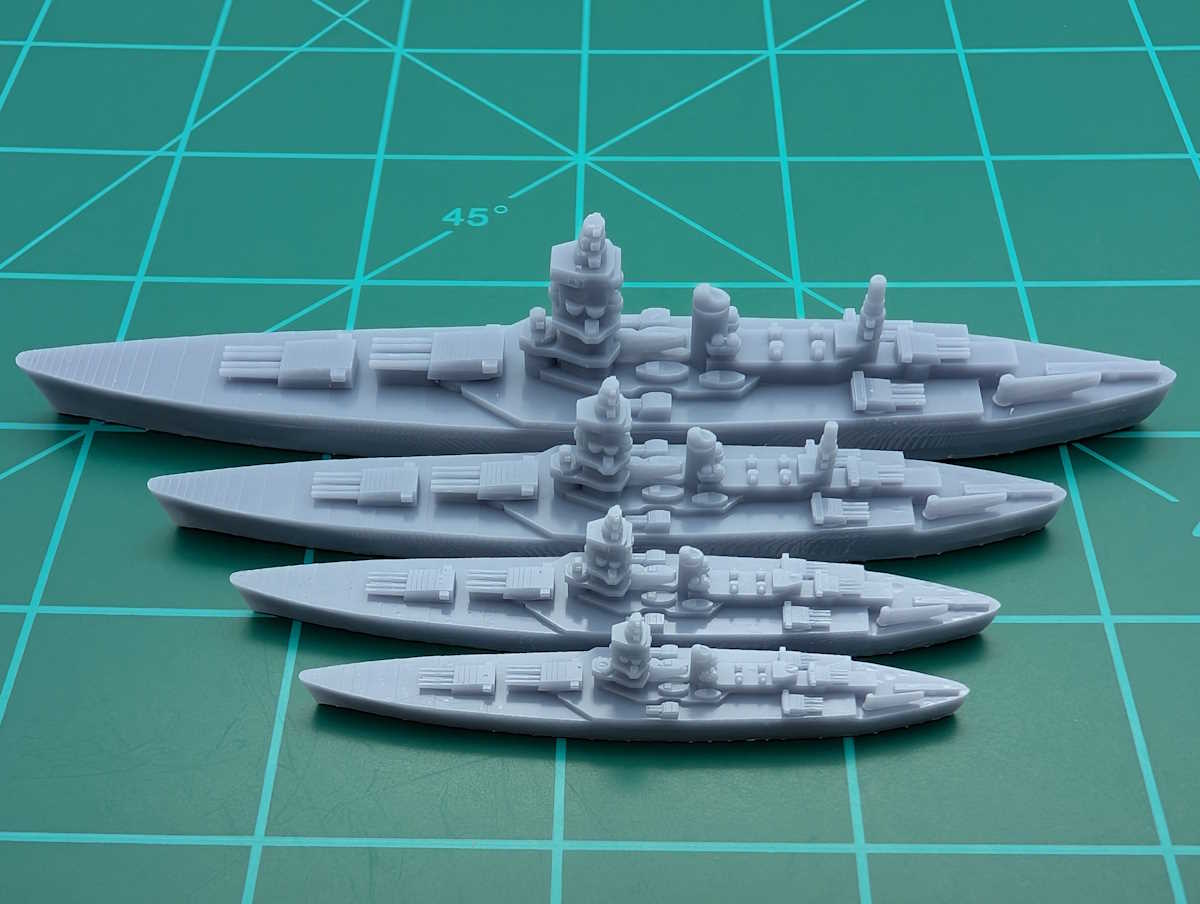 Our model ships are printed in gray resin to maximize the details. These contain more detail than other models and are designed to withstand robust handling. These are ideal for naval board games such as Axis and Allies: War at Sea and Victory at Sea. These are also perfect for dioramas of naval actions. Flight deck decals are available for each scale.