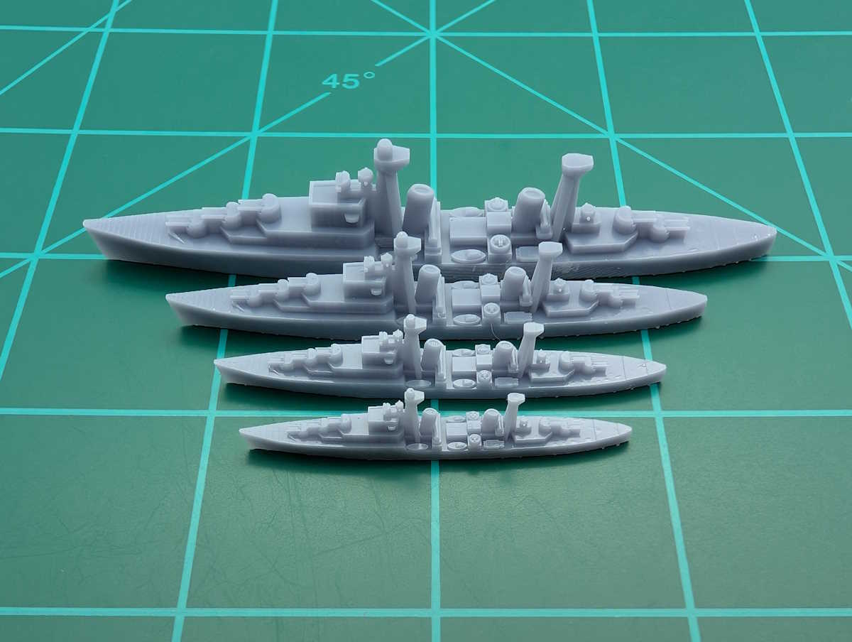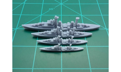Our model ships are printed in gray resin to maximize the details. These contain more detail than other models and are designed to withstand robust handling. These are ideal for naval board games such as Axis and Allies: War at Sea and Victory at Sea. These are also perfect for dioramas of naval actions. Flight deck decals are available for each scale.