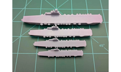 Our model ships are printed in gray resin to maximize the details. These contain more detail than other models and are designed to withstand robust handling. These are ideal for naval board games such as Axis and Allies: War at Sea and Victory at Sea. These are also perfect for dioramas of naval actions. Flight deck decals are available for each scale.