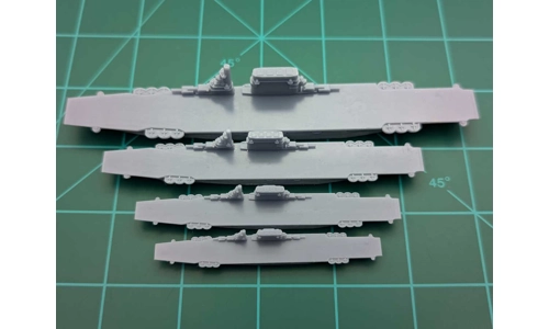 Our model ships are printed in gray resin to maximize the details. These contain more detail than other models and are designed to withstand robust handling. These are ideal for naval board games such as Axis and Allies: War at Sea and Victory at Sea. These are also perfect for dioramas of naval actions. Flight deck decals are available for each scale.