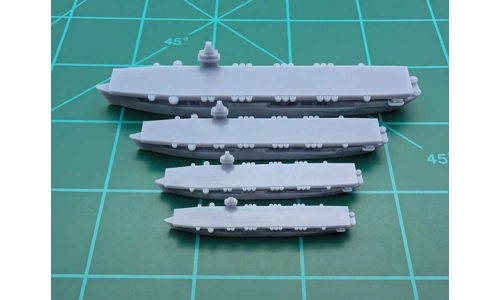 Our model ships are printed in gray resin to maximize the details. These contain more detail than other models and are designed to withstand robust handling. These are ideal for naval board games such as Axis and Allies: War at Sea and Victory at Sea. These are also perfect for dioramas of naval actions. Flight deck decals are available for each scale.